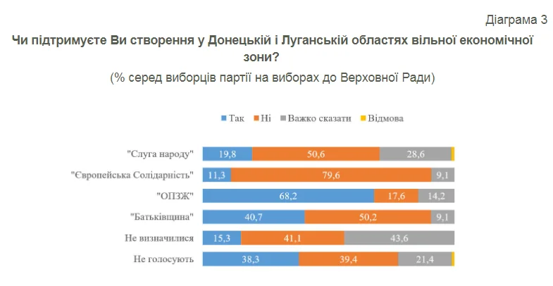 Найбільше таку ініціативу підтримують виборці партій Опозиційна платформа — За життя (68,2%), Батьківщина (40,7%) і Слуга народу (19,8%).