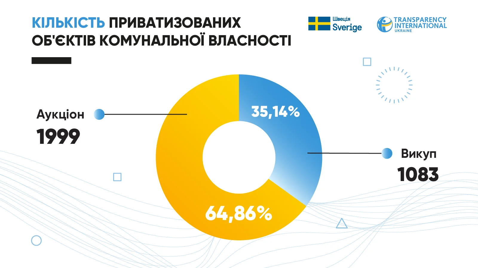 При цьому за досліджуваний період понад третину усіх приватизованих об'єктів комунальної власності придбали саме у такий спосіб.