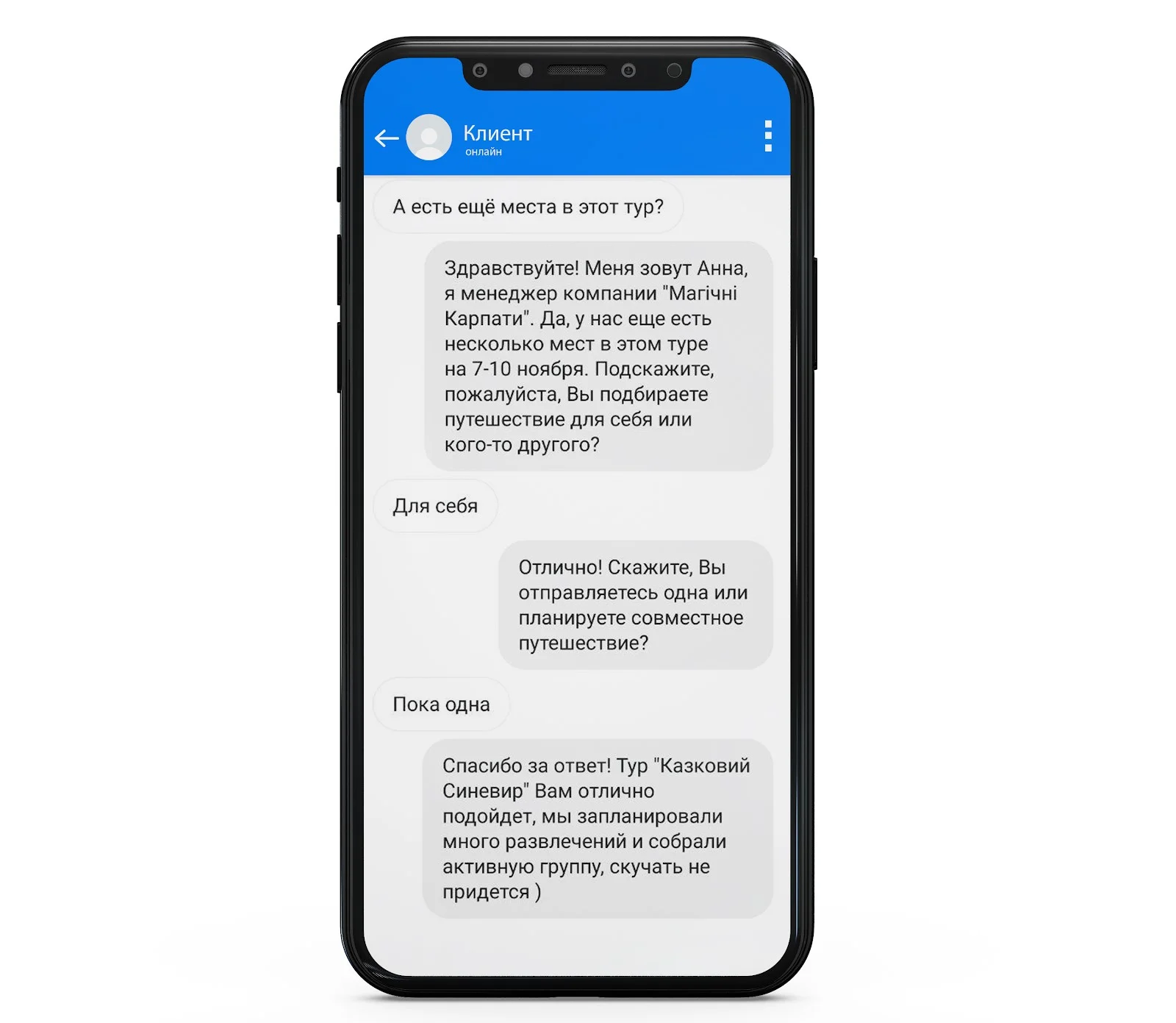 Якщо клієнт написав першим і відразу перейшов до суті, без привітання — ви все одно привітайтеся і відрекомендуйтеся.