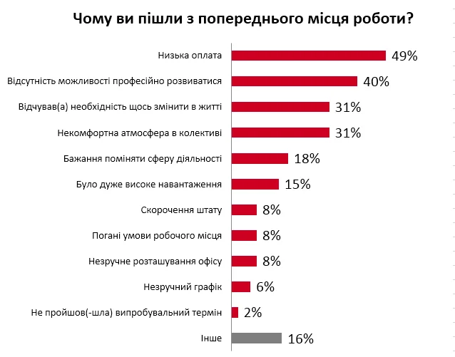 - більш цікаві обов'язки на новому місці роботи – 42%.
