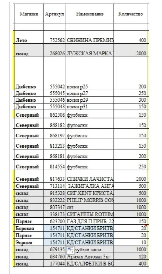 Так, 15 березня 2022 року контролер управління Ашан — Санкт-Петербург Наталія Зельцер надіслала колегам листа з проханням «зібрати цесію для гуманітарної допомоги». До листа додавався список, за яким неважко помітити, що всі ці товари призначаються для чоловіків (мінімальний розмір шкарпеток у списку — 25-й, що відповідає 40-му розміру взуття), є сигарети (які взагалі ніколи не постачаються як гуманітарна допомога), запальнички, бритви, але немає нічого для жінок і дітей. Кількість товарів (1000 тюбиків зубної пасти, 500 запальничок) свідчить, що одержувачів було багато, цього вистачило б на один-два батальйони. Загальна вартість цієї березневої партії «допомоги» становила 2 млн рублів.