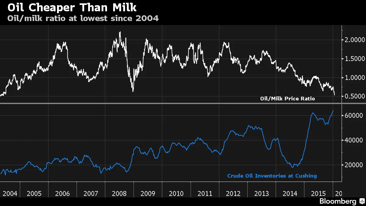 Вартість одного галона (3,79 л) нафти WTI в даний час дорівнює ціні приблизно половини галон молока класу III, який торгується на ф'ючерсній біржі в Чикаго. Це найгірше співвідношення цін для нафти з 2004 року.