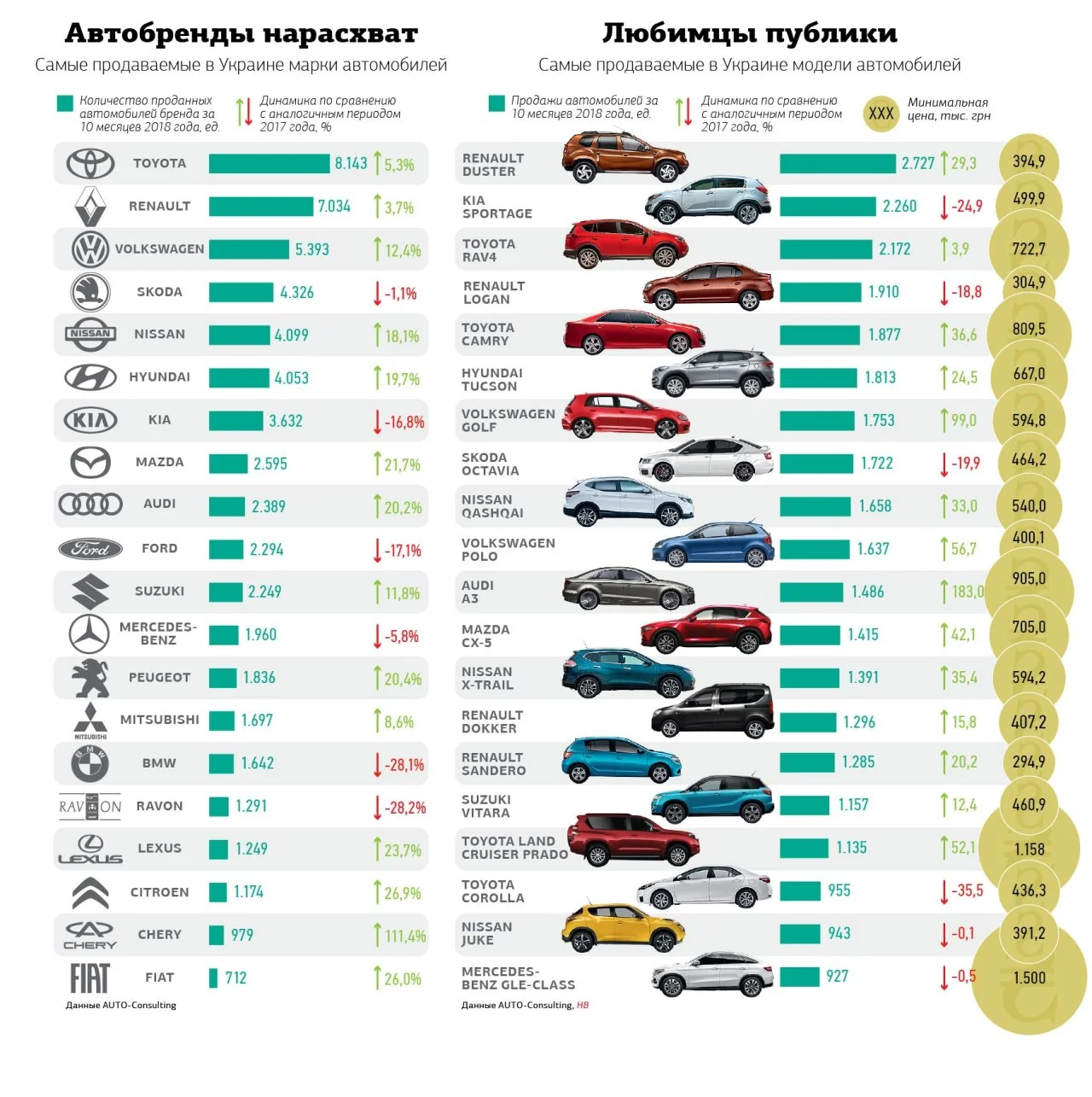 Із січня по жовтень у країні щомісяця продавали приблизно 6,5 тис. нових іномарок. Трійка лідерів серед брендів майже традиційна: на першому місці Toyota з результатом 8,1 тис., далі йде Renault — 7 тис., а бронза у Volkswagen — 5,4 тис.